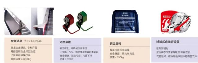 該系統(tǒng)分為逃生設施和智聯(lián)系統(tǒng)兩部分,通過人防+物防+技防的手段,形成立體化安全防控體系,解決城市高層建筑應急自救逃生面臨的重大難題。